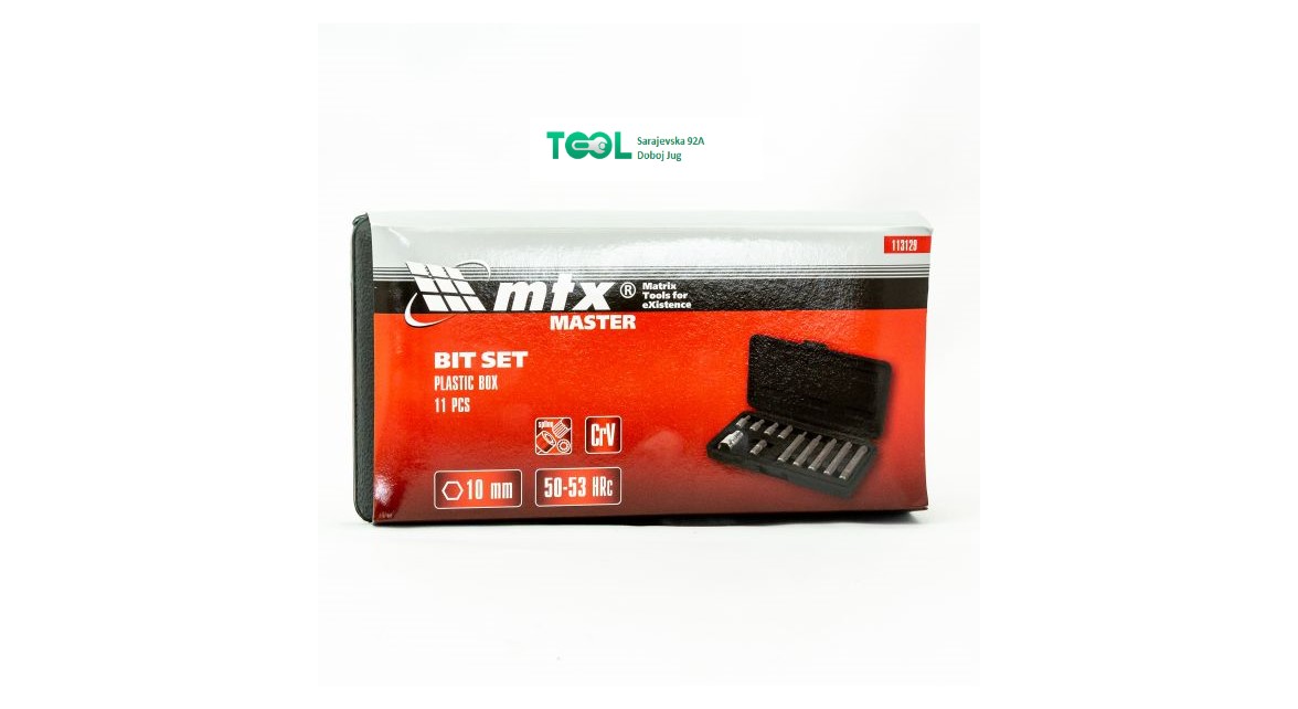 Bitovi MTX izrađeni su od krom-vanadijskog čelika, koji kombinira otpornost na habanje i visoku tvrdoću (50 – 53 HRC). Za praktičnost skladištenja i transporta, pakirani su u plastičnu kutiju.
