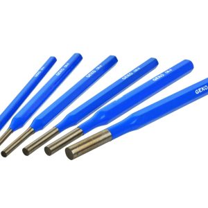Set dlijeta, probijača i centralnih probijača od krom-vanadij čelika. Korisni alati su: za označavanje centara rupa prije bušenja, za rezanje lima i šipki i za bušenje metalnih elemenata. Savršen set za bravare i mehaničare.